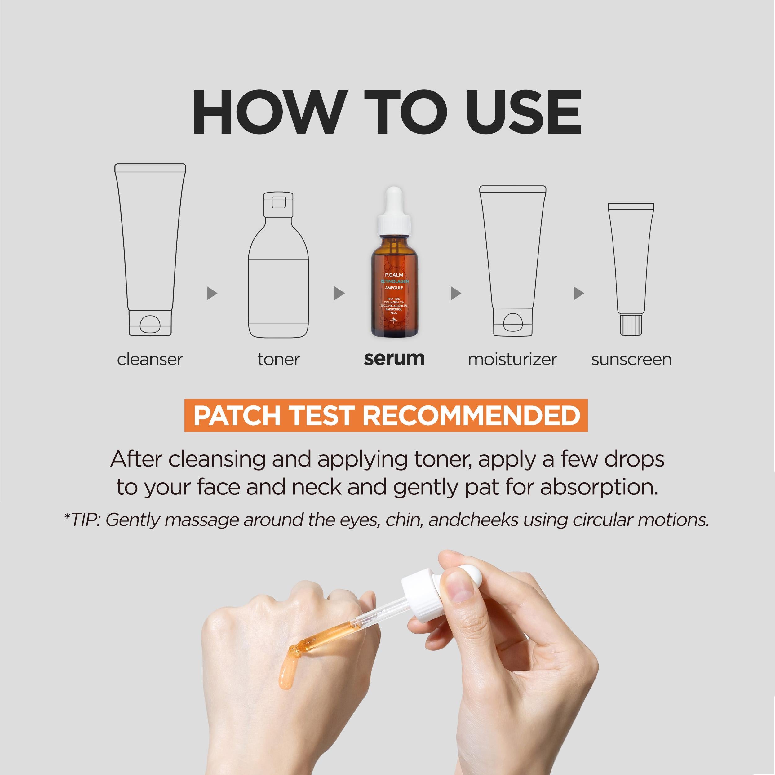 1. After Cleansing, apply the serum to face and neck